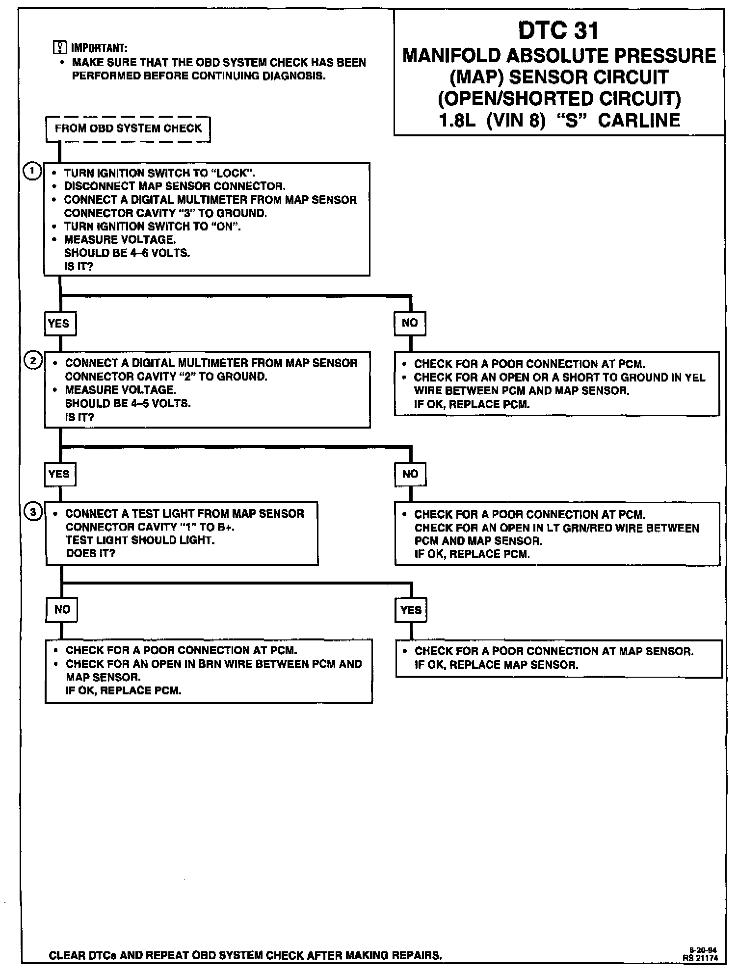 3. This checks for an open in the BRN wire between the PCM and MAP sensor, and for a faulty PCM or MAP sensor.