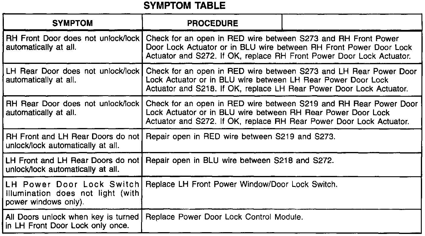 Symptom Table (Part 1 Of 2):
