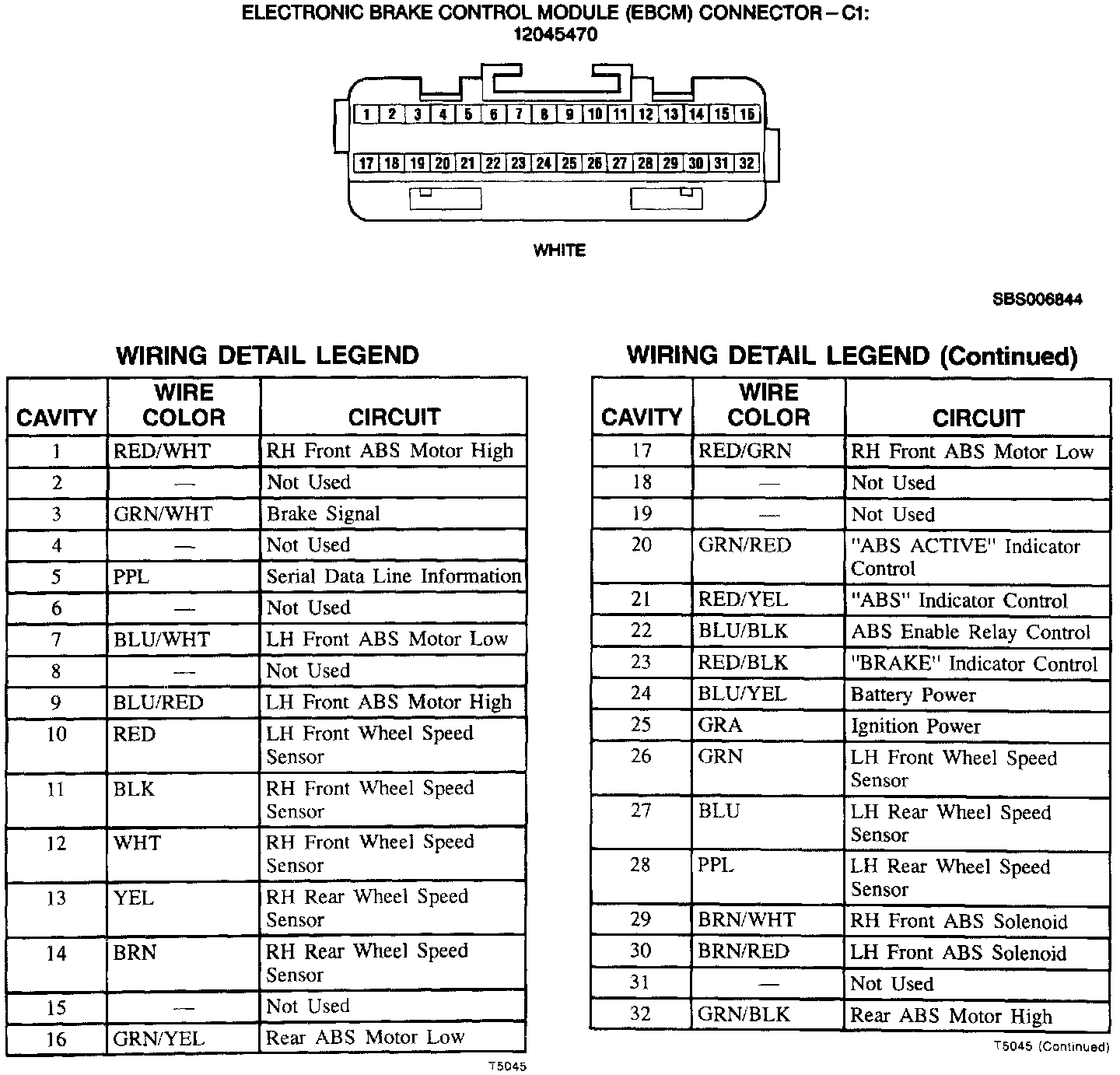Electronic Brake Control Module (EBCM) Connector - C1: