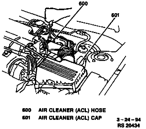 6. ACL hose and cap to engine compartment; secure with four clips.