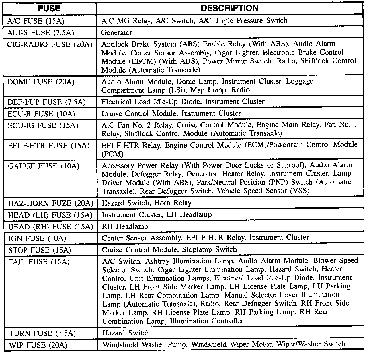 Fuse Block Details: Fuse Description: