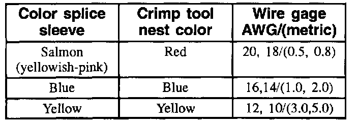 Select the proper splice sleeve according to wire size. The splice sleeves and tool tests are color coded (refer to Chart).