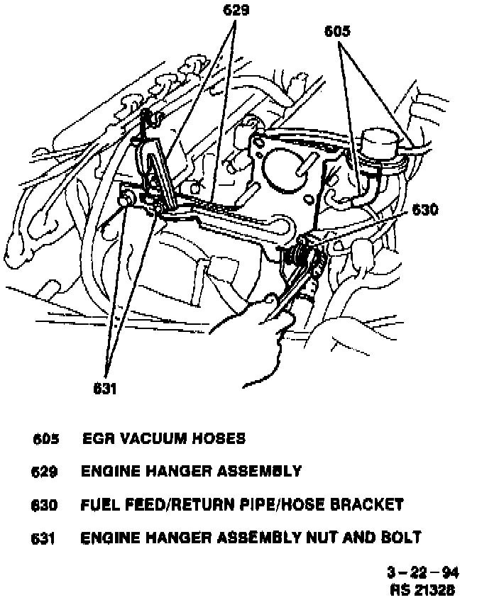 Fuel Feed/Return, Engine Hanger Bracket and EGR Hoses: