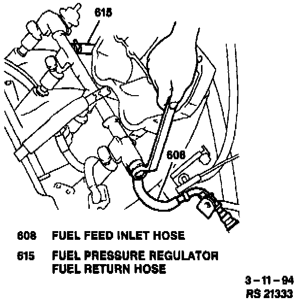 24. One clamp and fuel return hose from fuel pressure regulator.