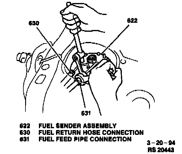 4. One nut and fuel feed hose from fuel sender assembly (see image).