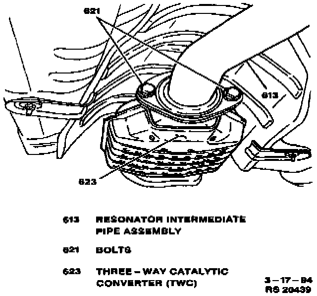 4. Two bolts, two nuts and resonator intermediate pipe assembly from Three Way Catalytic Converter (TWC) (see image).