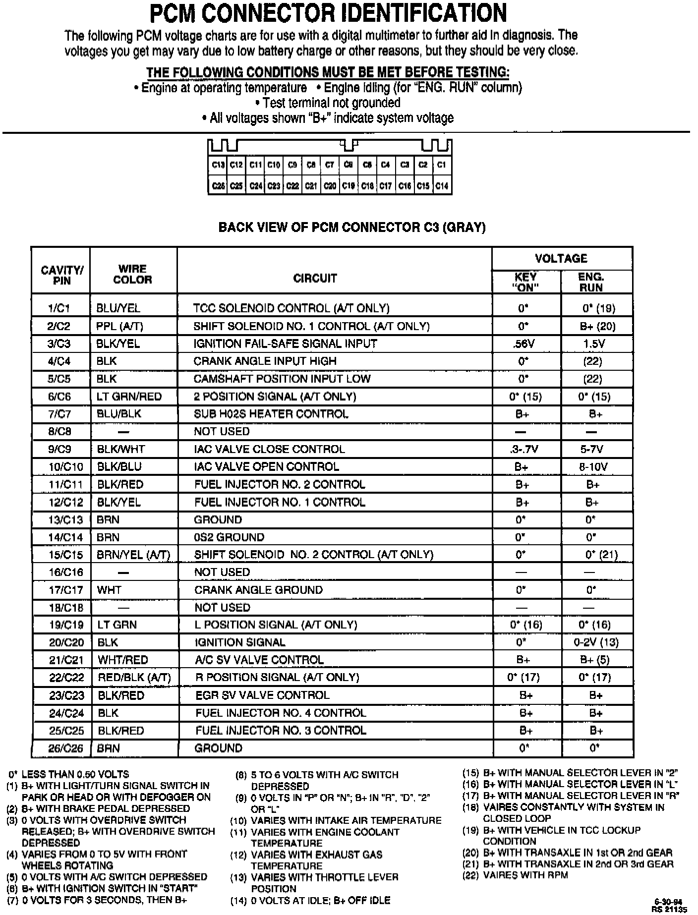 PCM Connector C3 Terminal End View (3 0f 3):