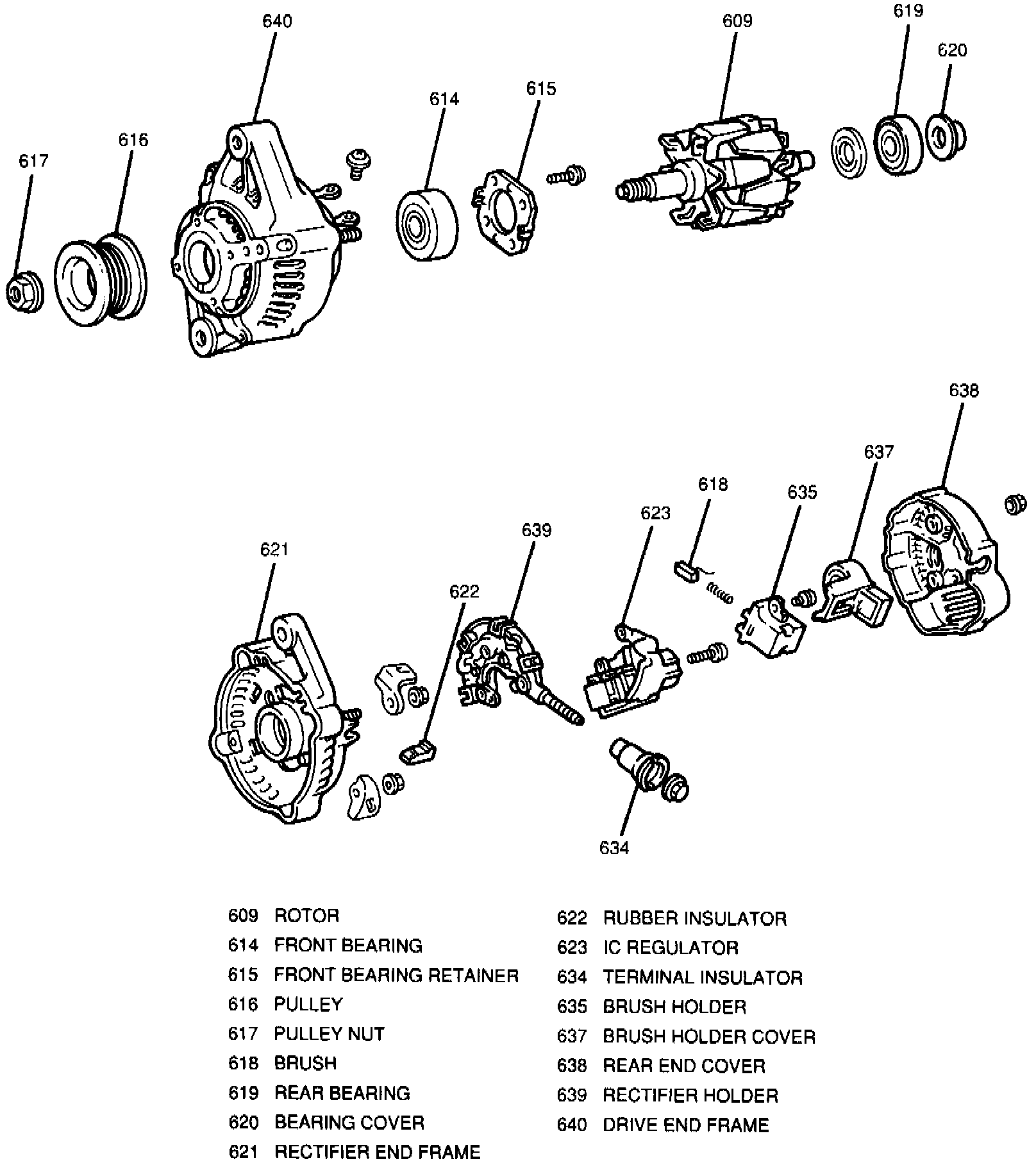 Fig. 2 Exploded View Of Nippondenso Alternator: