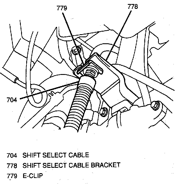 30. Shift select cable into shift select cable bracket; secure with one E-clip.