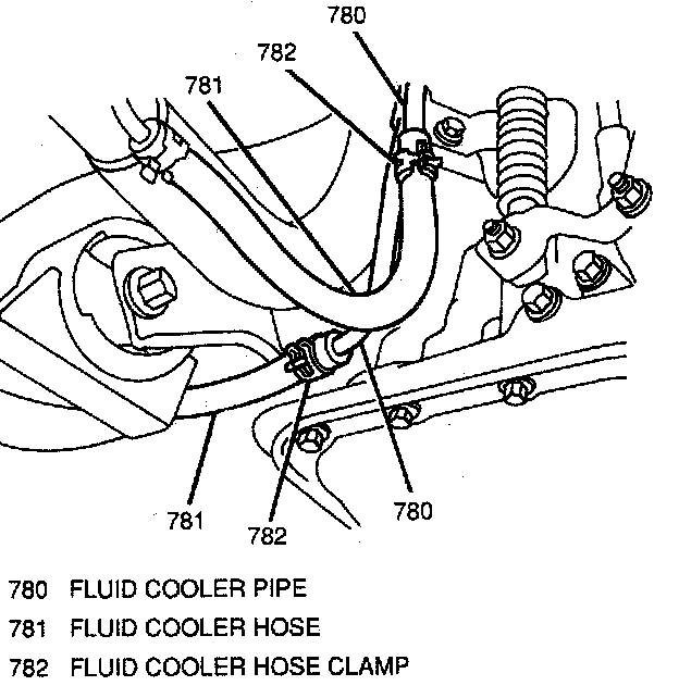 25. Two hose clamps, inner and outer fluid cooler hoses from inner and outer fluid cooler pipes at transaxle.