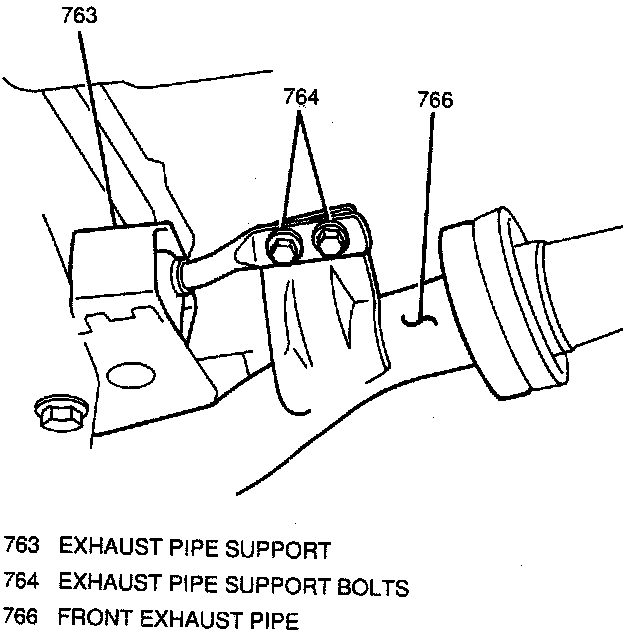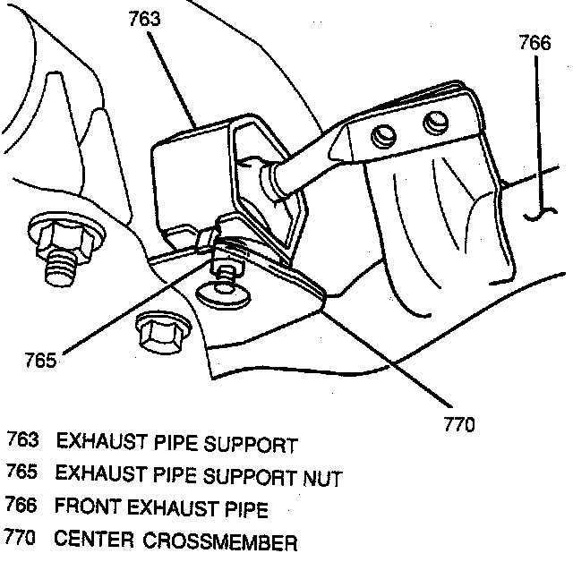 13. Front exhaust pipe support to center crossmember; secure with one nut.