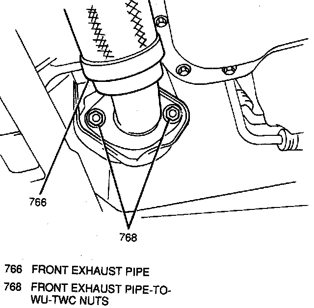 12. Two bolts to front exhaust pipe-to-TWC mating flange.