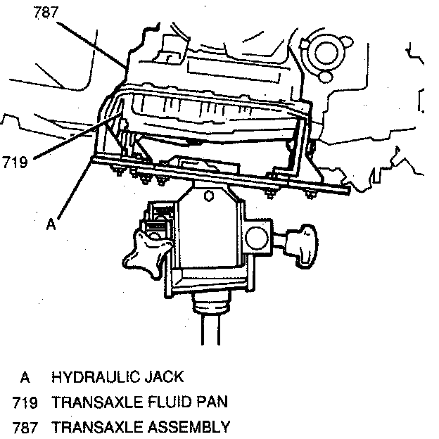 42. Remove transaxle from engine by carefully moving transaxle away from engine toward the left side of the engine compartment and very slowly lowering the hydraulic jack making sure no obstructions exist.