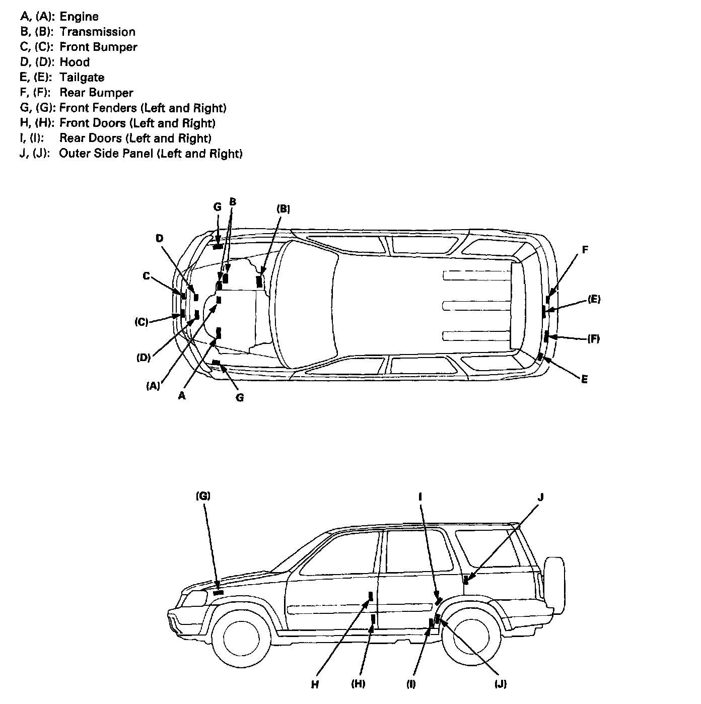 - Be careful not to damage the parts marking labels during body repairs. Mask the labels before repainting.