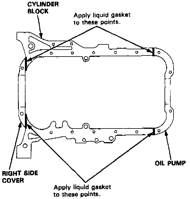 16. Apply liquid gasket on the oil pump and right side cover mating areas.
