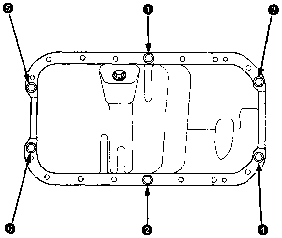19. Tighten all bolts and nuts, starting from nut (1), clockwise in three steps. Excessive tightening can cause distortion of the oil pan gasket and oil leakage.