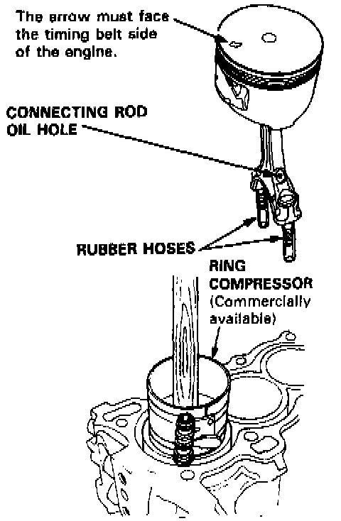 PISTON INSTALLATION1. Apply a coat of engine oil to the ring grooves and cylinder bores.