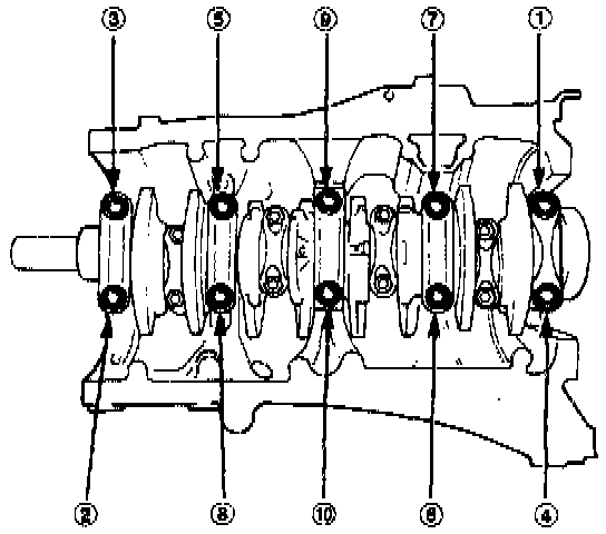 10. Reinstall the main caps and bearings on the engine in proper order.
