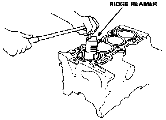11. If you can feel a ridge of metal or hard carbon around the top of each cylinder, remove it with a ridge reamer. Follow the reamer manufacturer's instructions. If the ridge is not removed, it may damage the pistons as they are pushed out.