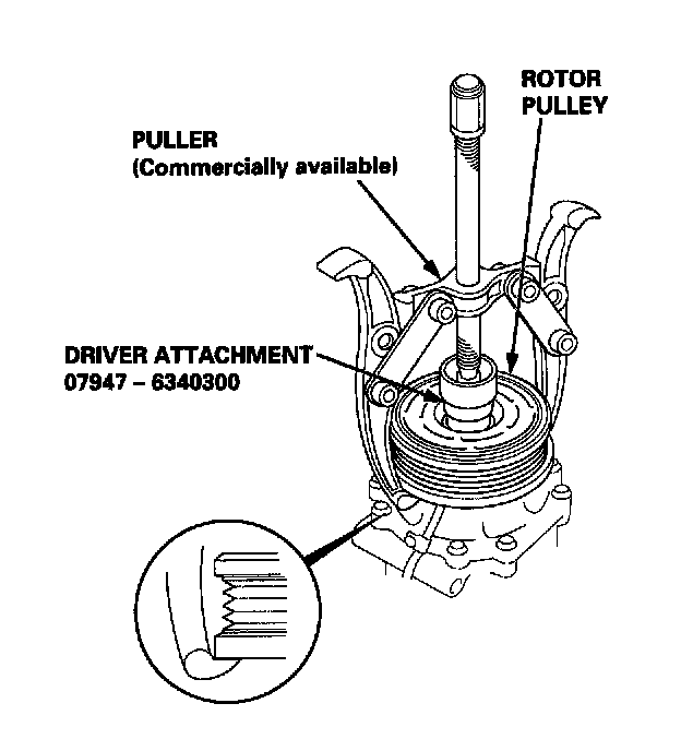 - Clean the rotor pulley and compressor sliding surfaces with non-petroleum solvent.