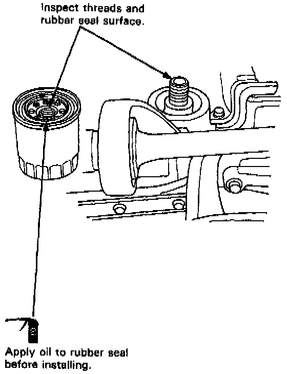2. Inspect the threads and rubber seal on the new filter. Wipe off the seat on the engine block, then apply a light coat of oil to the filter rubber seal.