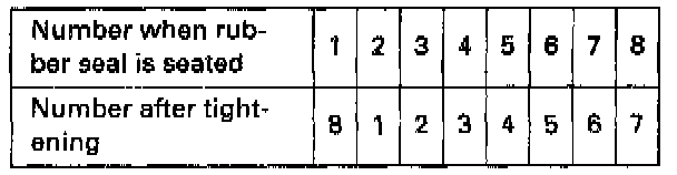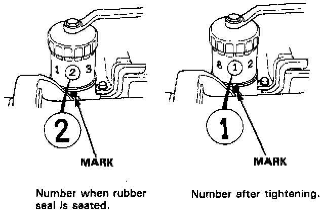 1) Make a mark on the cylinder block under the number that shows at the bottom of the filter when the rubber seal is seated.