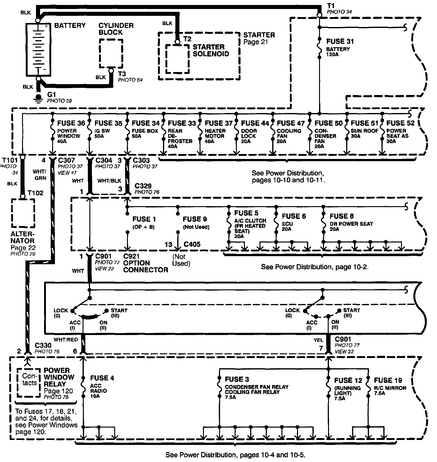 Power Distribution schematics show how power is supplied from the positive battery terminal to various circuits in the car. Refer to the "Power Distribution" to get a more detailed picture of how power is supplied to the circuit you're working on.From Battery to Ignition Switch, Fuses, and Relays