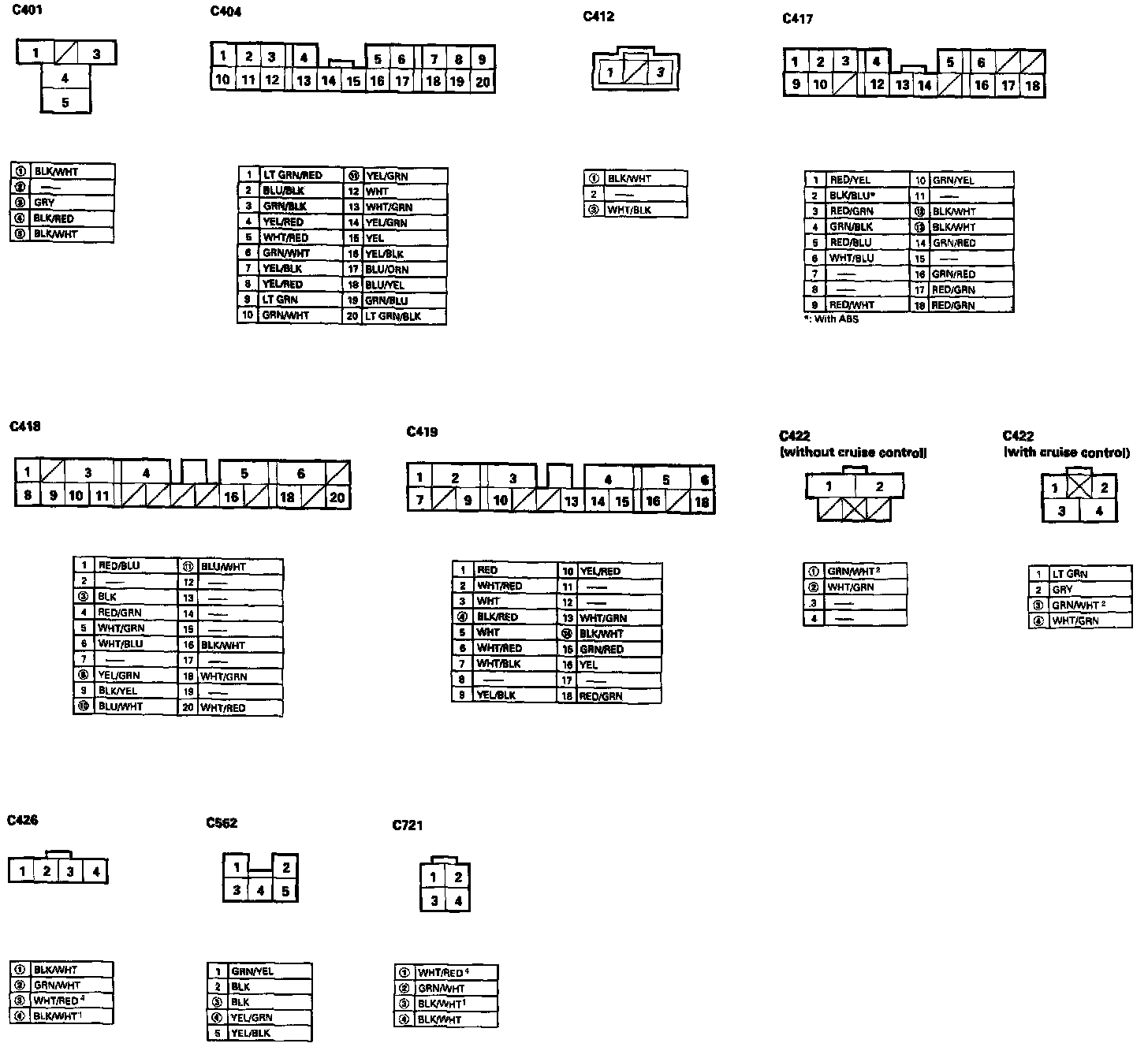 NOTE: - Different wires with the same color have been given a number suffix to distinguish them (for example, YEL/BLK1 and YEL/BLK2 are not the same).
