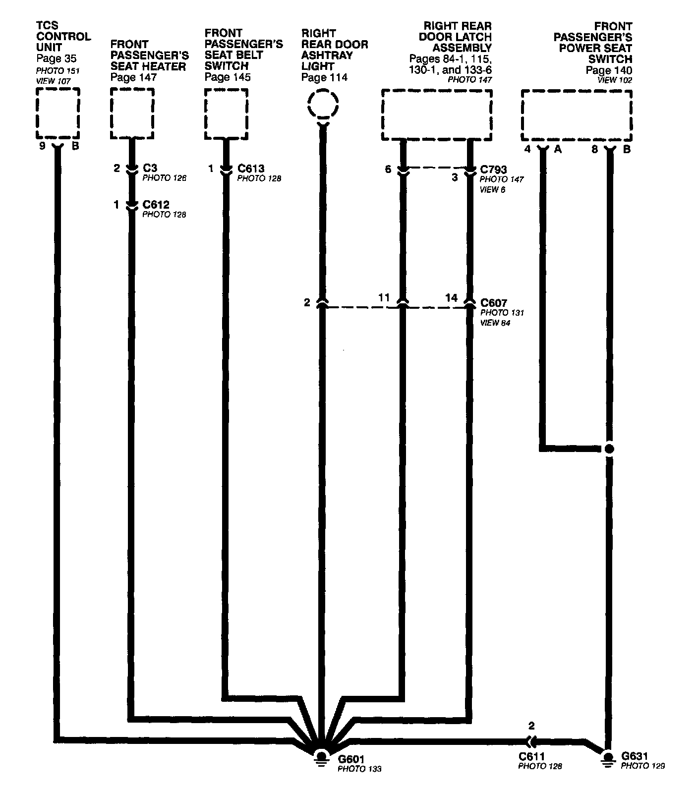 This sample Ground Distribution schematic shows all of the components that share two ground points.