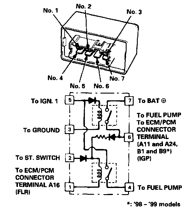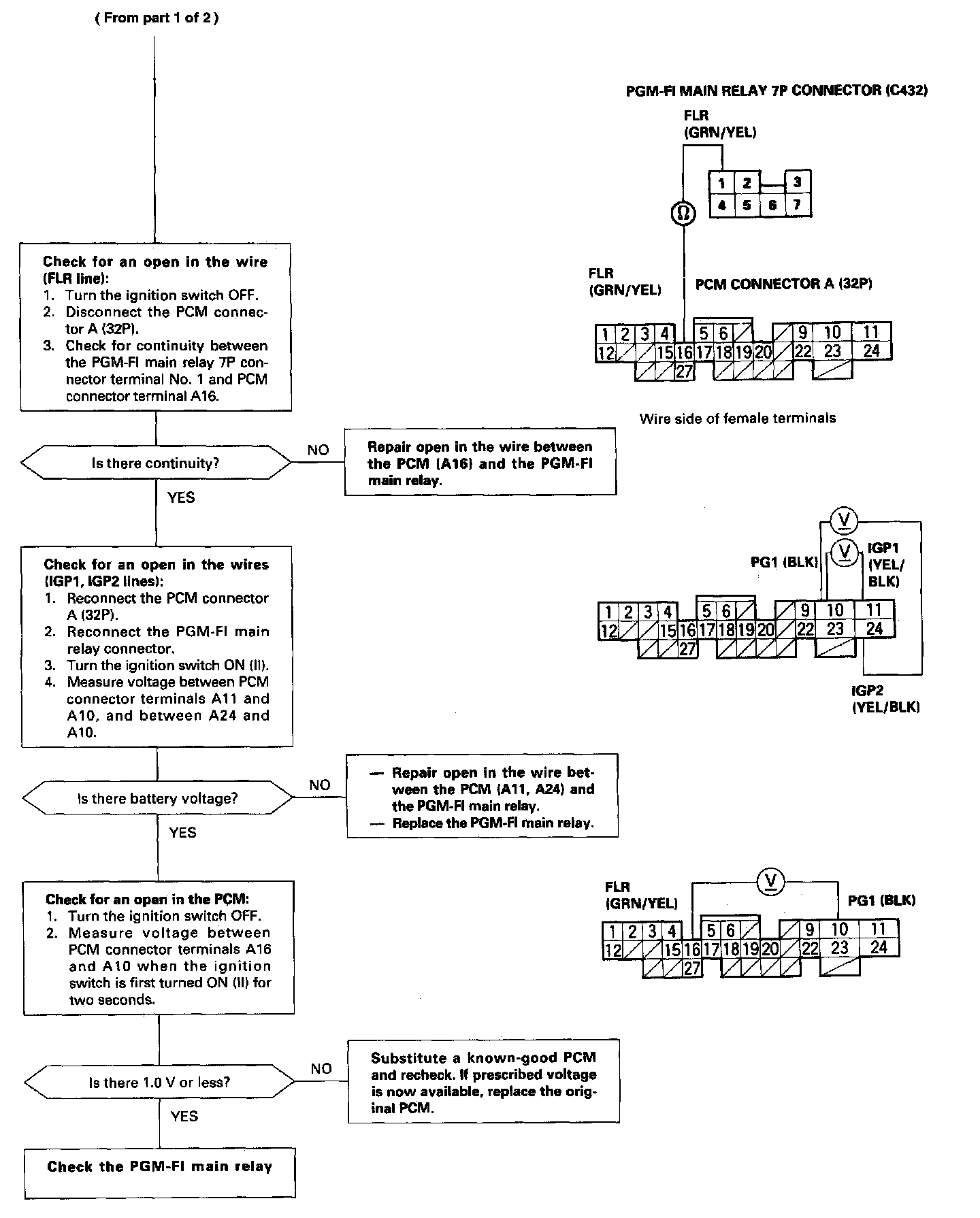 Relay TestingNOTE: If the engine starts and continues to run, the PGM-FI main relay is OK.