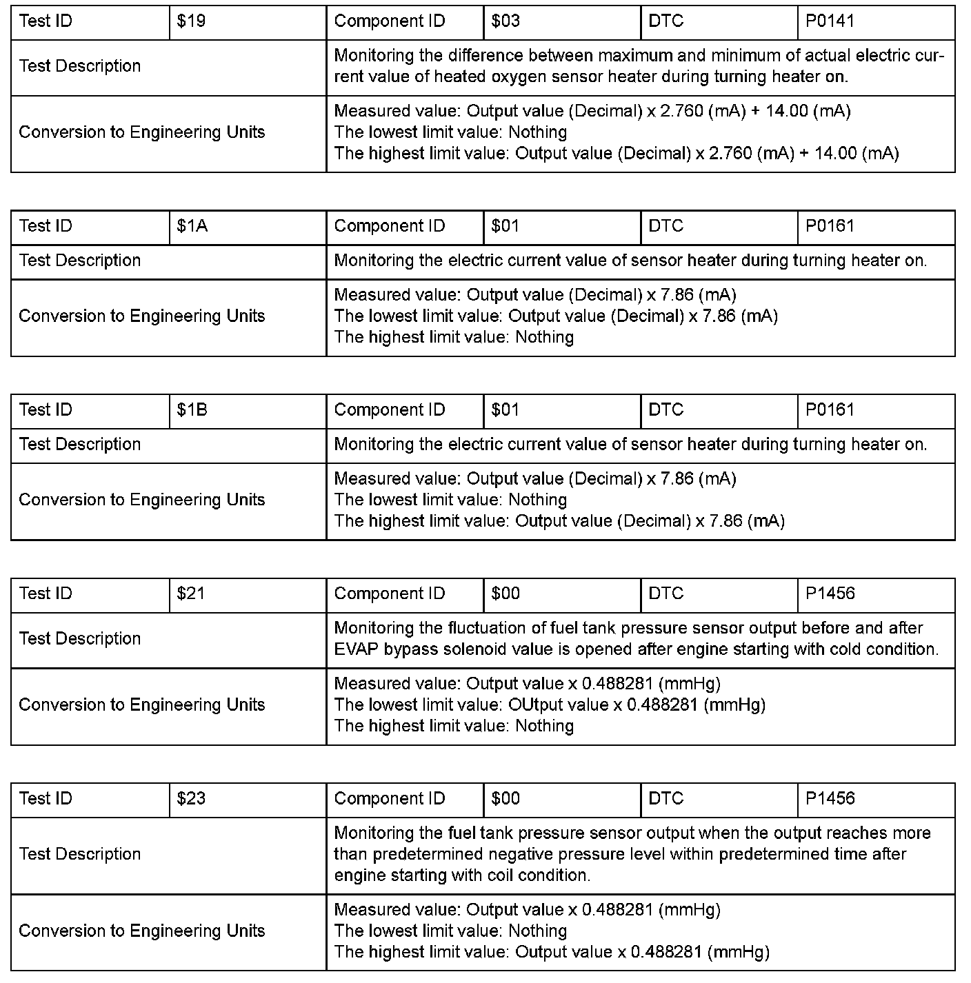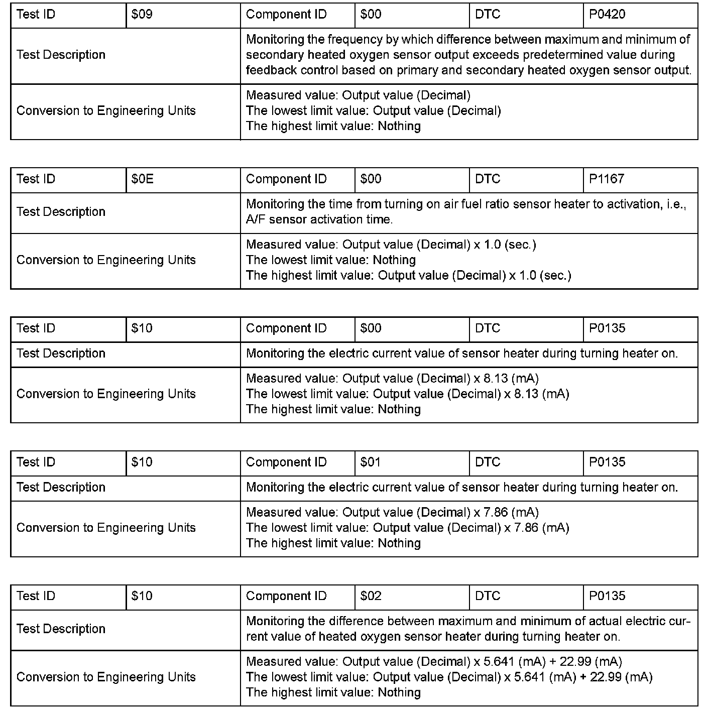 SAE J1979 Mode $06 Information by Test ID