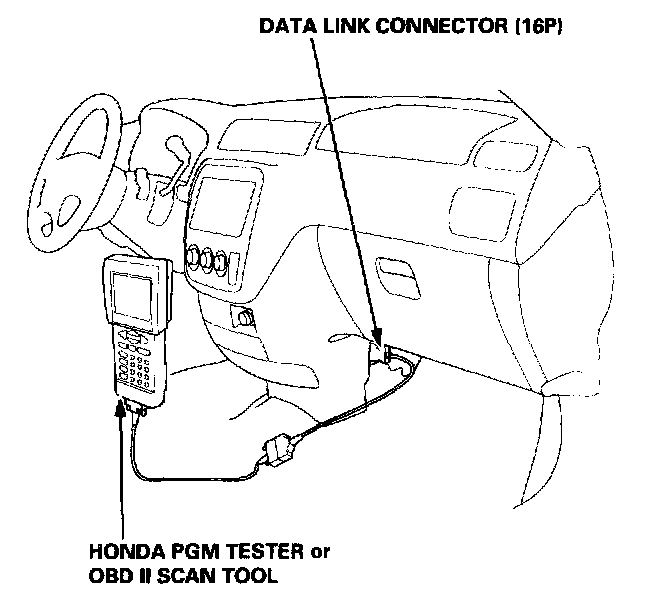1. Connect the an OBD II scan tool to the 16P Data Link Connector (DLC) located behind the right side of the center console.