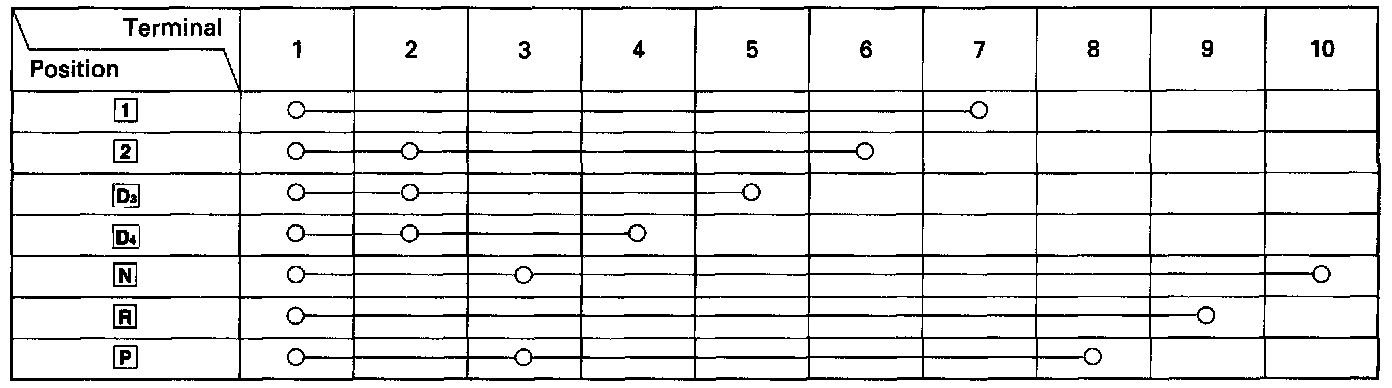 2. Check for continuity between the terminals in each switch position according to the table below.