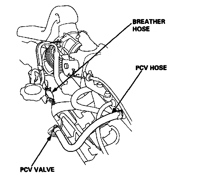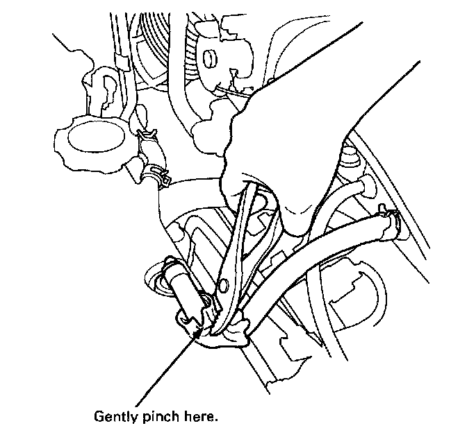 2. At idle, make sure there is a clicking sound from the PCV valve when the hose between the PCV valve and intake manifold is lightly pinched with your fingers or pliers.