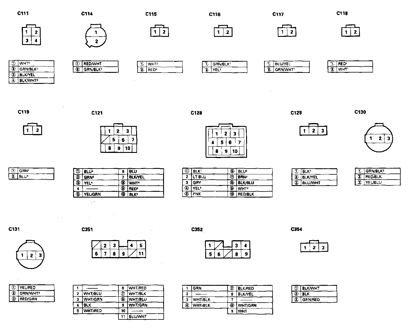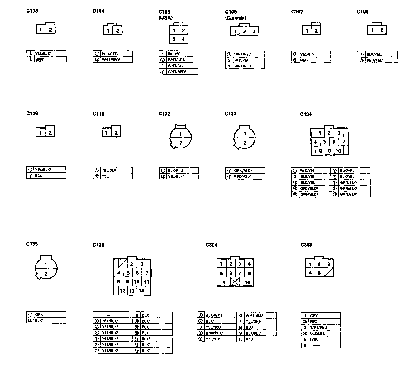 - Different wires with the same color have been given a number suffix to distinguish them (for example, YEL/BLK1 and YEL/BLK2 are not the same).