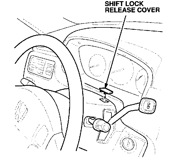 The shift lock release is on top of the steering column. The cover is stored in the glove box during shipping so the shift lock release can be used during shipment. Install the shift lock release cover during PDI
