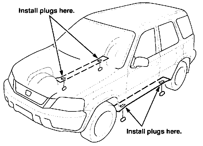 The tie-down points used during transportation to the dealer are exposed to splash from the tires. Grommets are provided in the PDI plastic bag to plug the holes and prevent debris from entering. Install all four plugs during PDI.