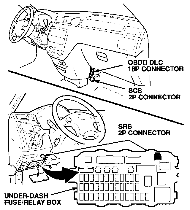 ^ SRS - Plugged into the under-dash fuse/relay box (yellow 2P connector).