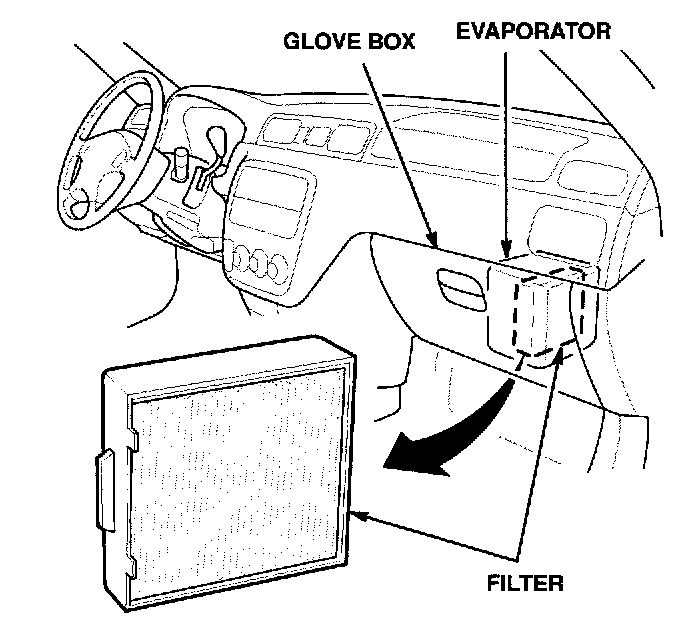 The CR-V air conditioning system comes equipped with an air filter located in the evaporator. The filter is there to keep dust and pollen out of the evaporator core. For normal use, the filter should be replaced every 30,000 miles or 24 months, whichever comes first.