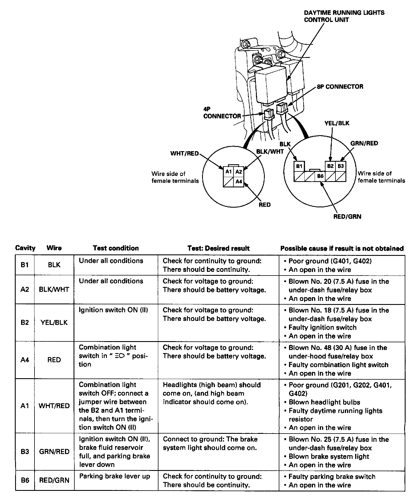 Daytime Running Lamp Control Unit: Testing and Inspection