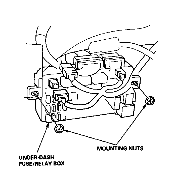 4. Remove the two mounting nuts, and pull the under-dash fuse/relay box out from under the dash.