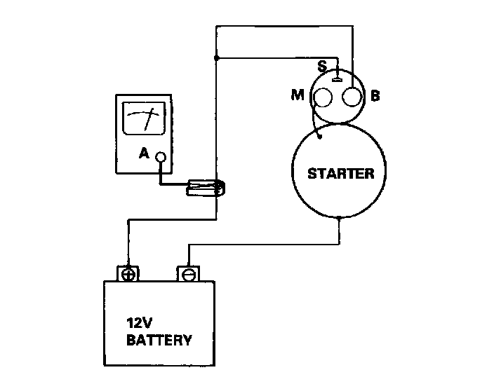 7. Connect the starter to the battery as described in the diagram below, and confirm that the motor starts and keeps rotating.