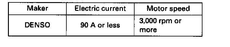 8. If the electric current and motor speed meet the specifications when the battery voltage is at 11.5 V, the starter is working properly.