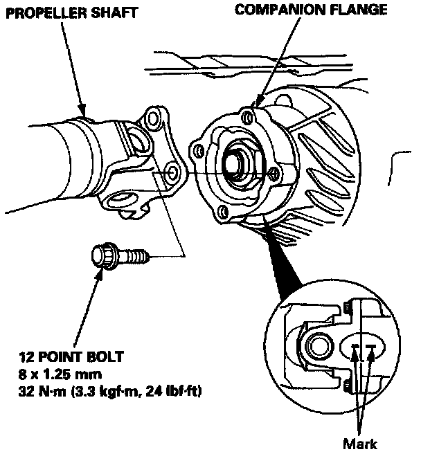 - During the propeller shaft installation, align the marks on the propeller shaft and companion flange.