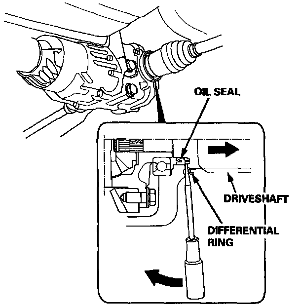 NOTE: Take care not to damage the differential oil seal and differential ring when prying out the differential inboard joint.
