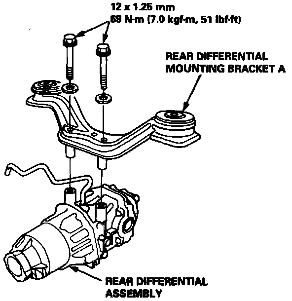 10. Remove the rear differential mounting bracket A from the rear differential assembly.
