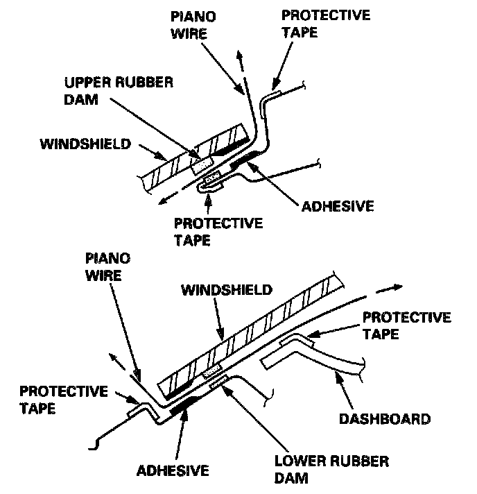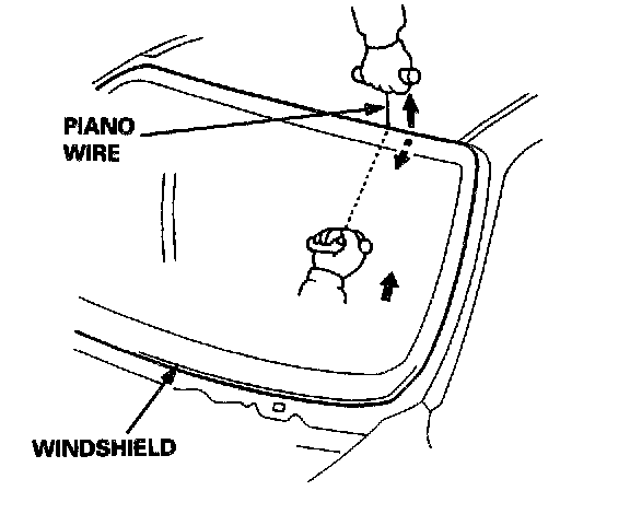 CAUTION: Hold the piano wire as close to the windshield as possible to prevent damage to the body and dashboard.