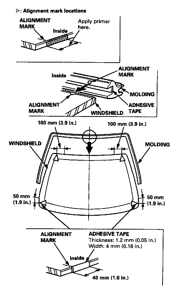 c. Align the alignment mark on the molding to the alignment mark of the windshield.