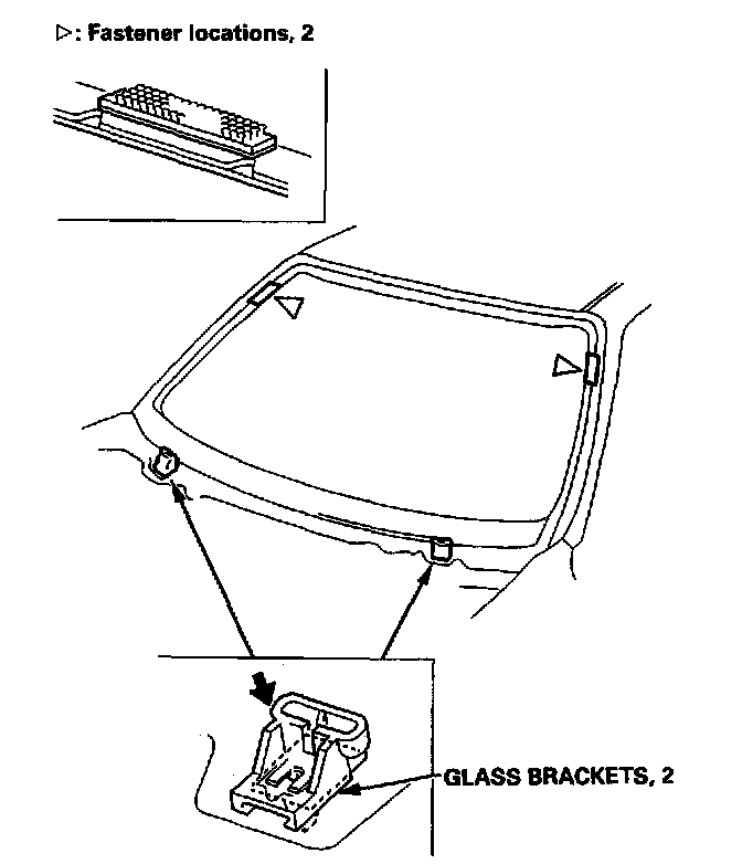 13. Install the glass brackets and fasteners to the body as shown.