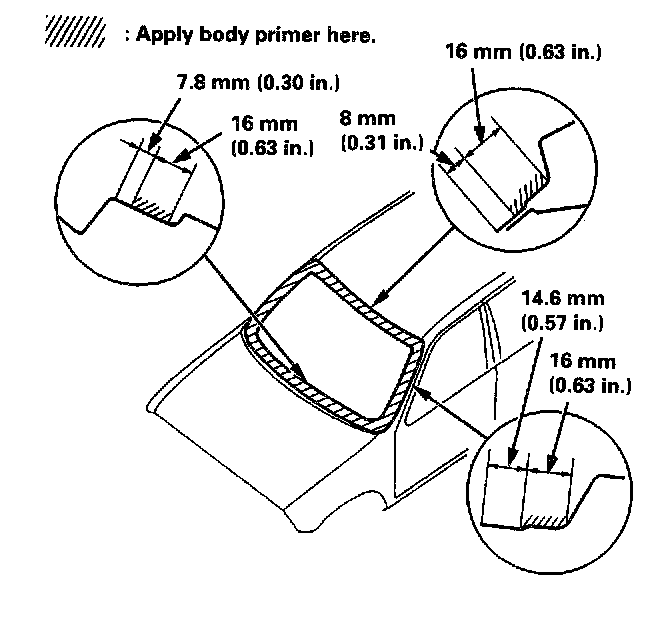 a. With a brush, apply a light coat of primer (3M N-200, or equivalent) to the edge of the windshield as shown,
